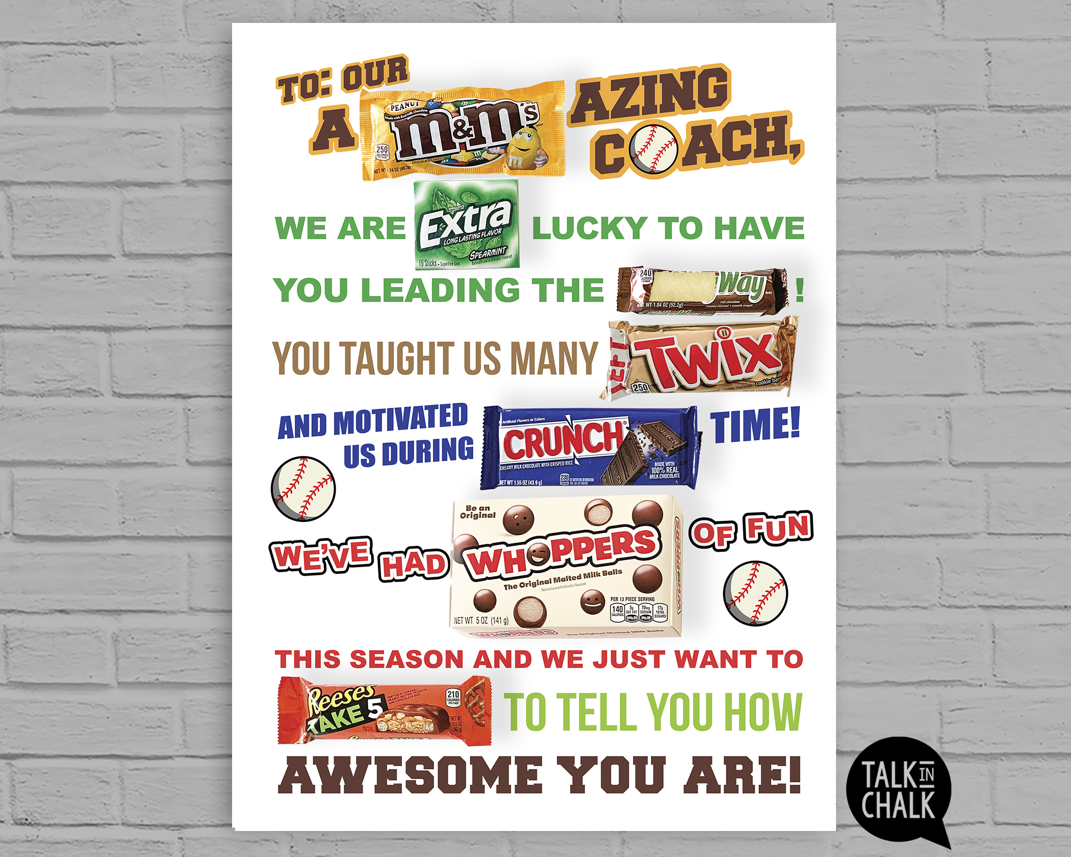 Baseball Coach Candy Appreciation Poster – Printable Sports Coach Gift | End of Season Candy Gram Sign | Thank You Gift for Baseball Coach