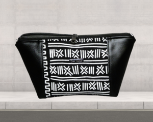 Black and White Tribal Print Waist Bag with Black Faux Leathe...
