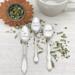 Hand stamping is a very old craft, done with a hammer, anvil and steel stamps. Each letter is hammered individually into the silver. There may be slight variances in the spacing and depth of the lettering. It is intentional and yields a hand crafted, artistic look befitting the vintage silverware. Hammering into the front of the silverware will leave a small mark on the back. This is not a defect, but rather a sign of a well crafted piece — like the knots on the back of embroidery or the stitching on the back of a quilt. I hope you see this and know that every letter on your silverware was lovingly placed there. May it bring joy to your table!