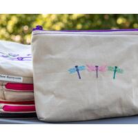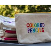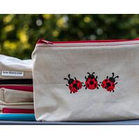 The pouch is made from Cotton Drill Fabric which is a 100% cotton, lightweight canvas. The embroidery is done using Rayon Embroidery thread. Zippers are “long pull” or “Purse” zippers with a larger zipper pull that not only looks great but makes the zipper easier to open and close. All pouches are fully lined in cotton fabric that coordinate/match with the zipper. Music themed pouches are lined in a music print fabric.