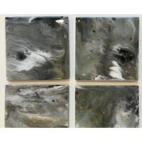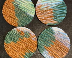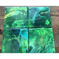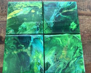 Jean also loves to refurbish and up-cycle furniture into pieces of functional art. After using her skills to bring a piece back to life she paints the top surface with acrylic paint and resin in a fun and colorful way. These pieces serve as accent tables and allows one to live with art in a functional way.