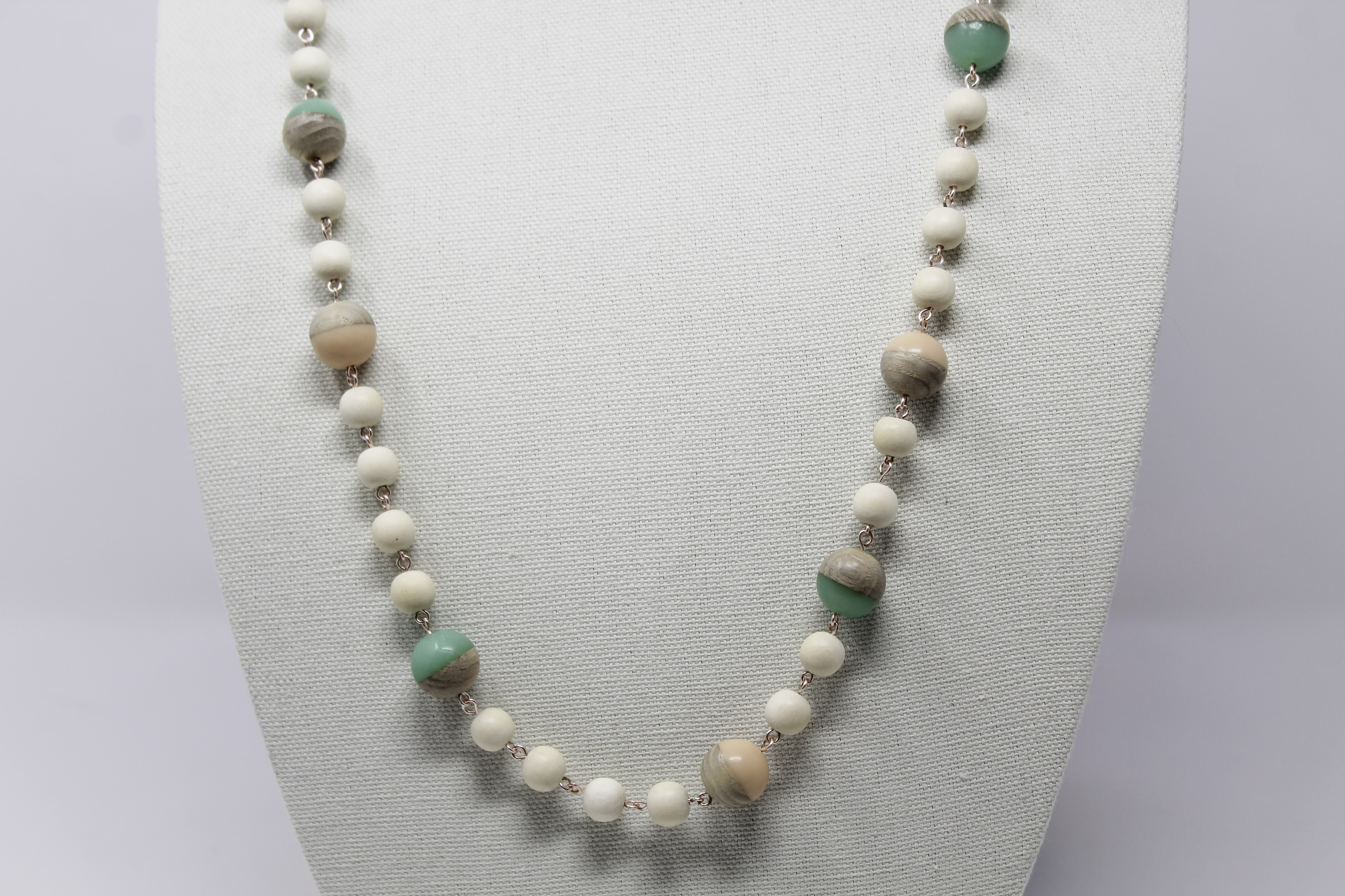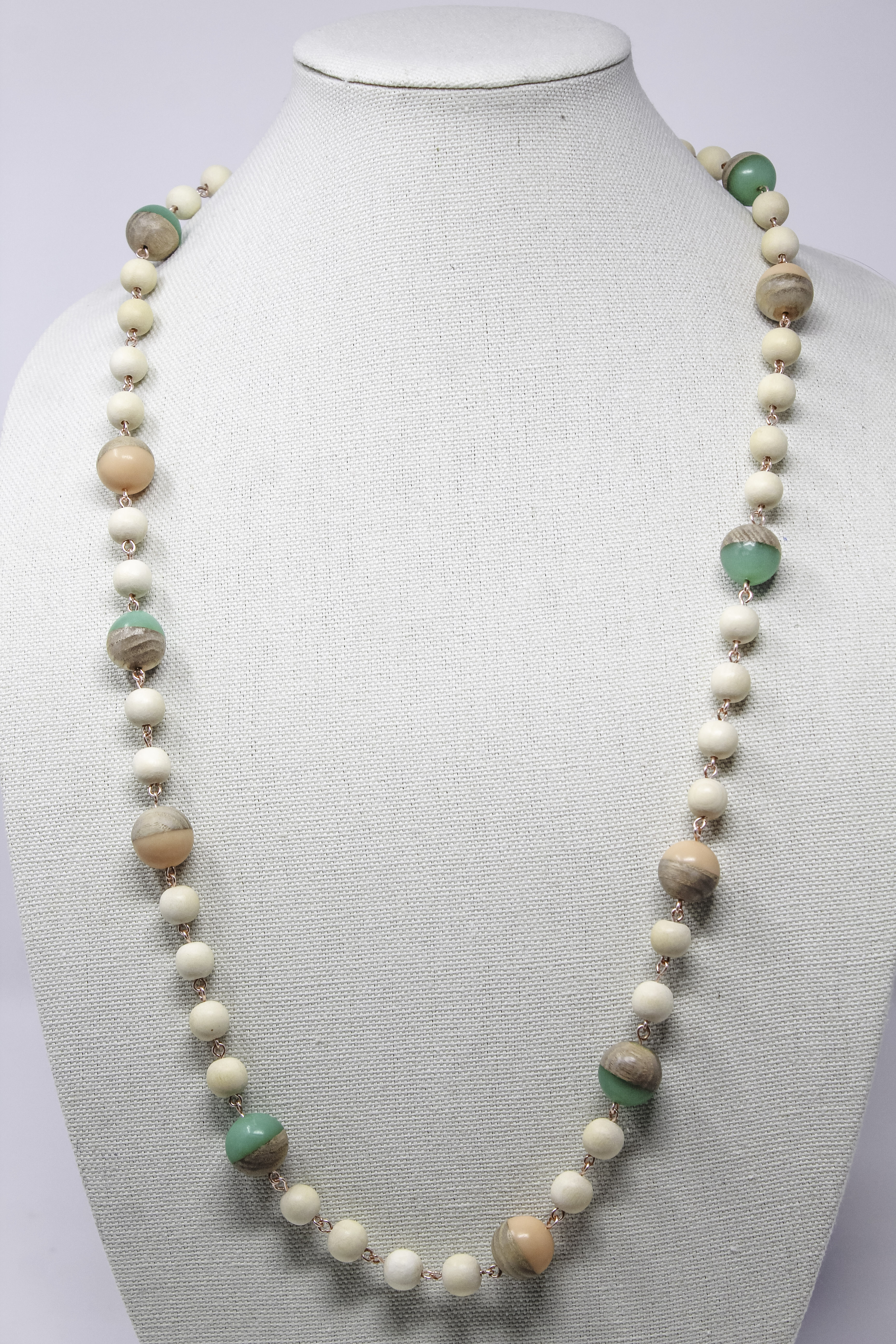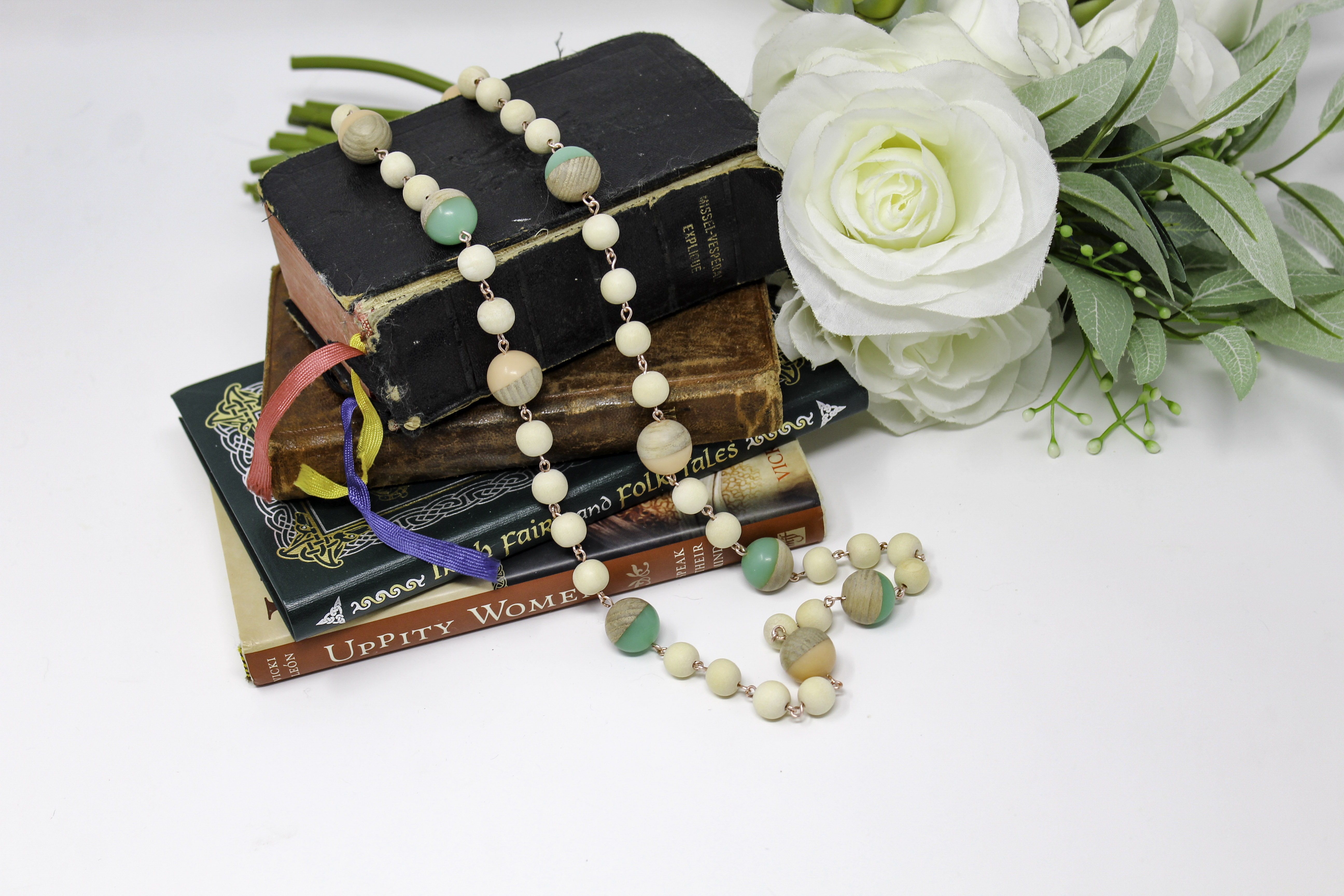 Bring a touch of coastal charm to your style with this beachy wood bead necklace from Wayward Sparrow Studio. This handmade piece features a soothing mix of pale pink and teal blue resin beads paired with natural wood accents, creating a look that’s effortlessly relaxed and full of seaside warmth. Each bead is hand linked with rose gold plated wire, giving the necklace a soft, sun-kissed glow and a touch of elegance.
