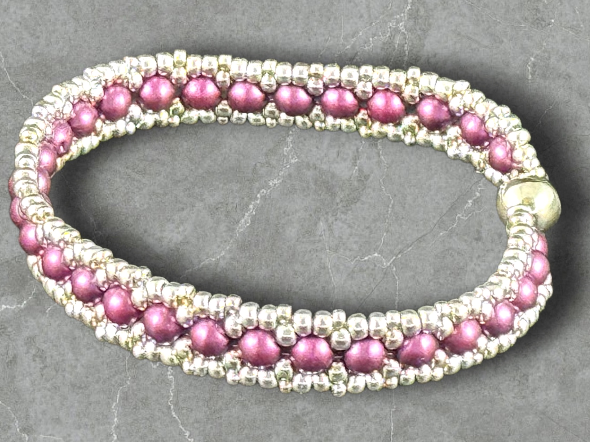 The pastel bordeaux RounDuo beads offer a smooth, domed finish that complements the fine detailing of the seed beads. A magnetic clasp provides easy, secure fastening, making this bracelet both stylish and practical.