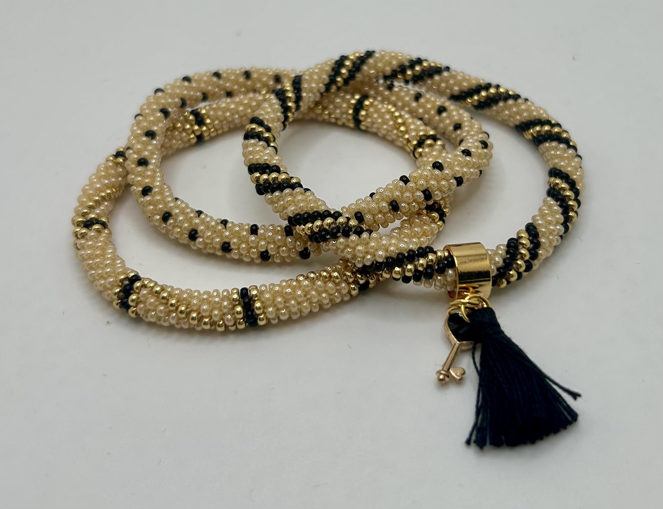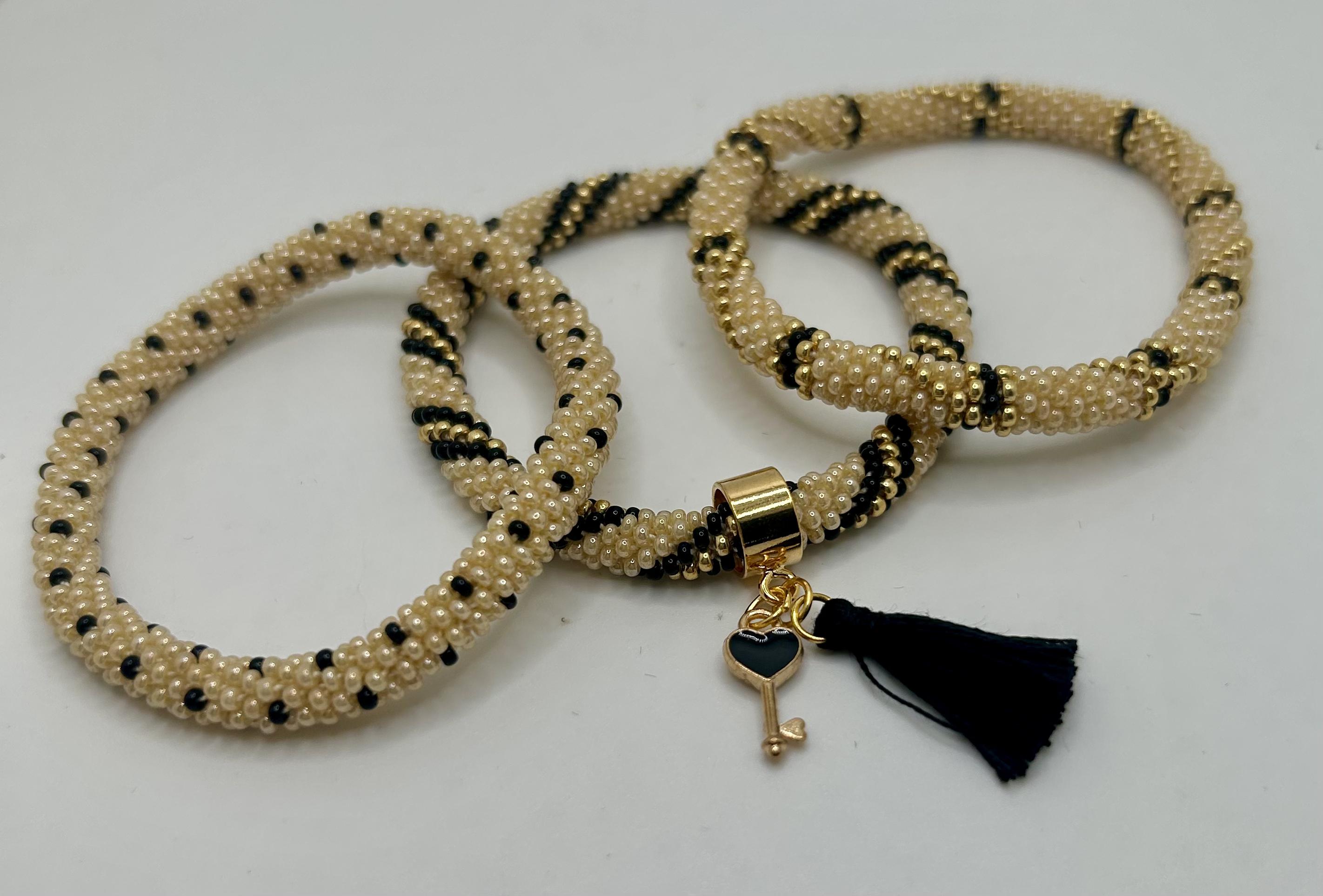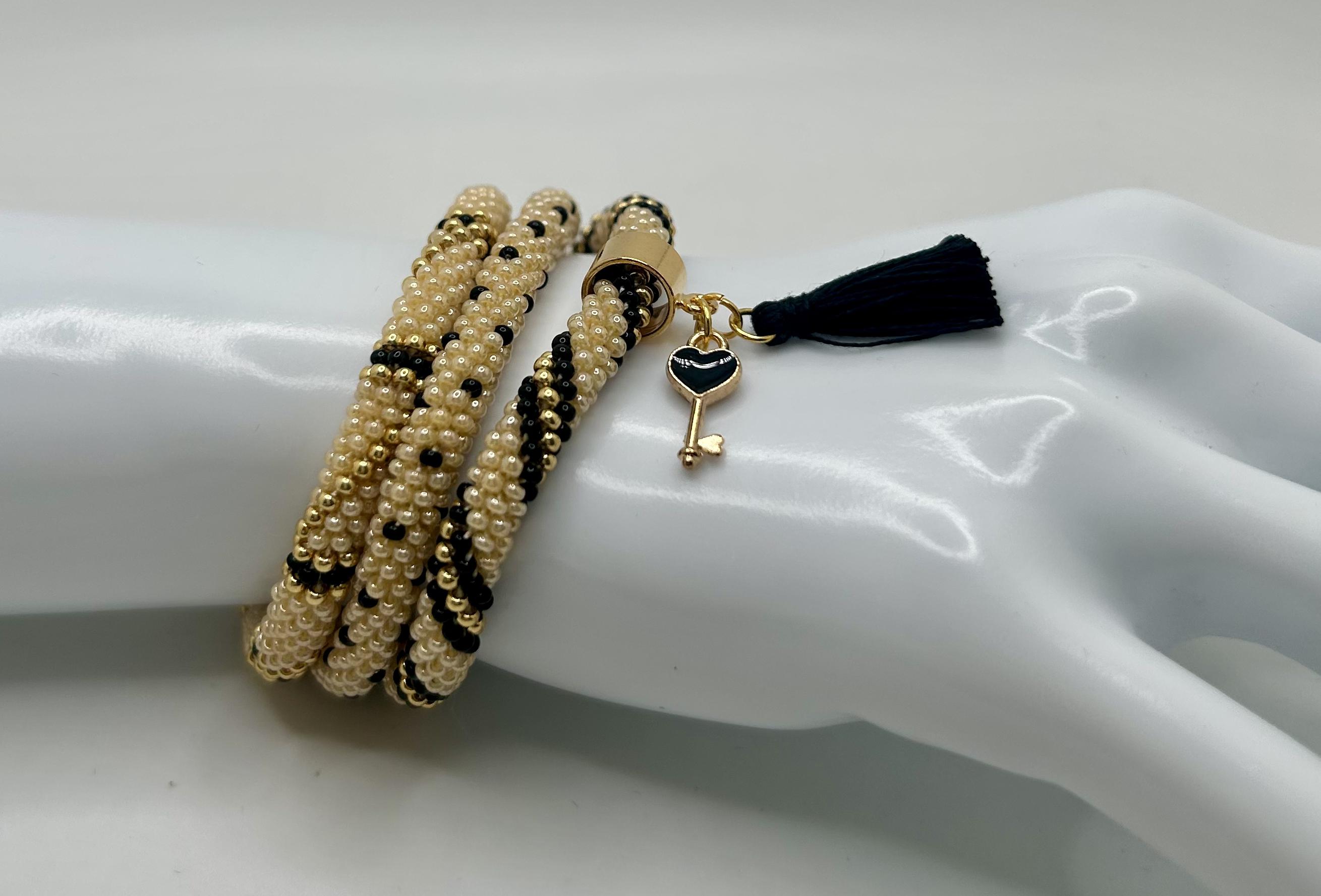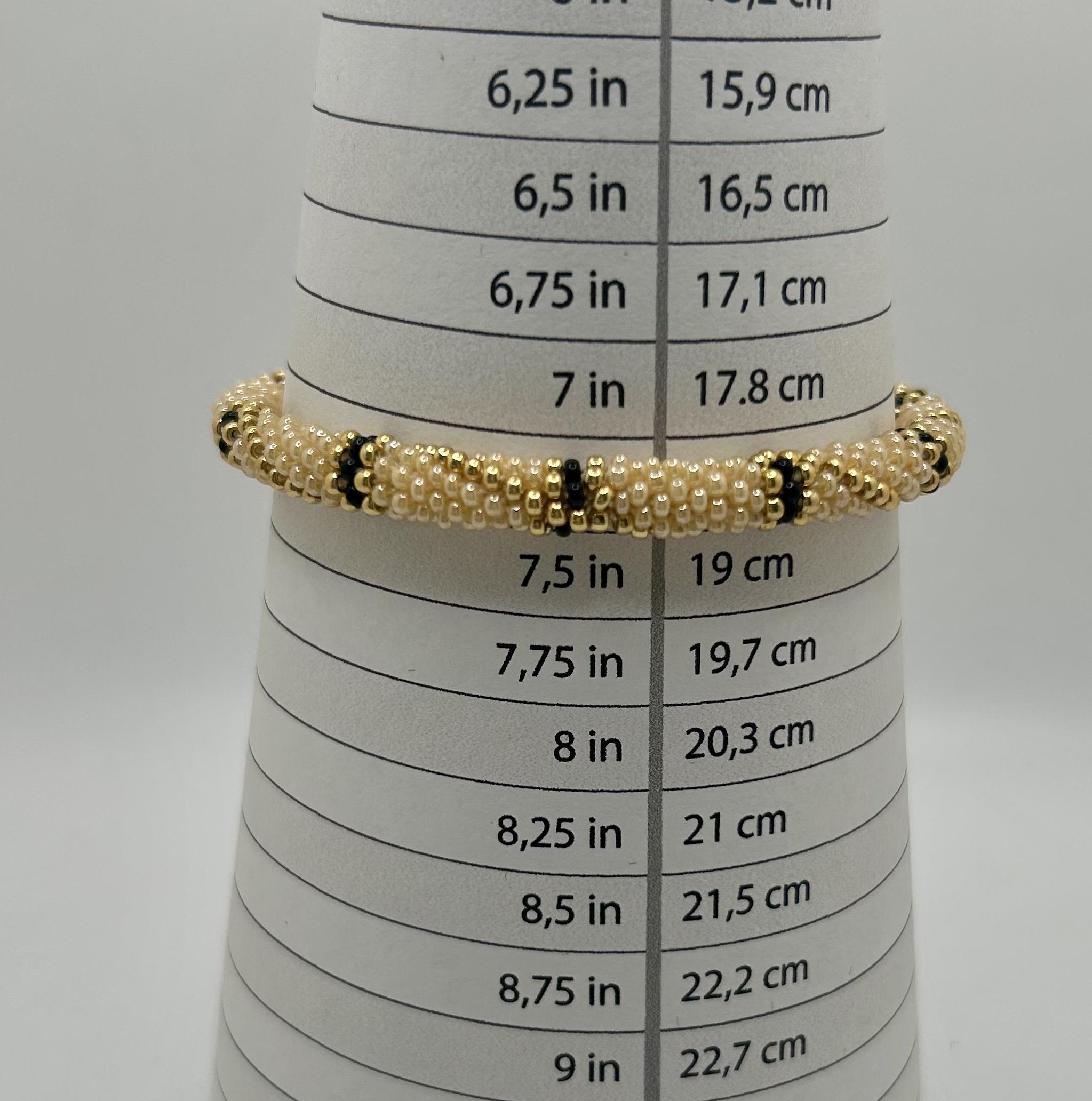 this beautiful crochet seed bead bracelet is made with best quality seed beads and cotton. No clasp needed. it rolls on your wrist very easy. fits sizes 6-8 bracelet size.