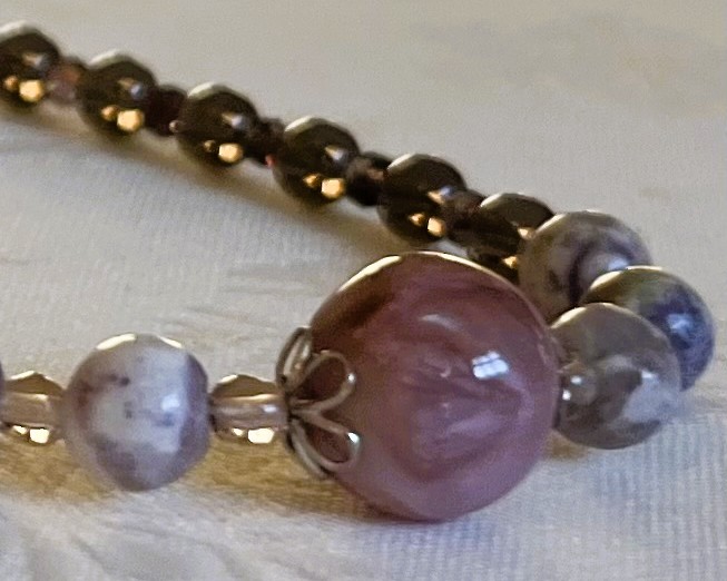 Colors: a mix of purple, lavender, smoky quartz, and opaque beads