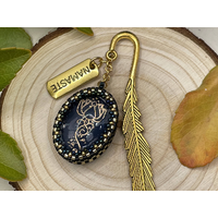 I make the stars for these book marks by hand from Miyuki glass seed beads. I then attach them by hand to the metal bookmark and add the bell and inspiration word.