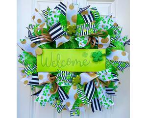 St Patrick's Day Welcome Wreath, Shamrock Decor, Happy St Pat...