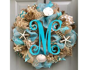 Personalized Beach Wreath, Beach Burlap Deco Mesh Wreath with...