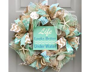 Beach Burlap Wreath, Seashell Wreath, Life Looks Better Under...