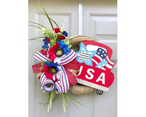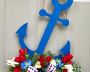 Anchor Door Hanger, Nautical Front Door, Floral Patriotic Anc...