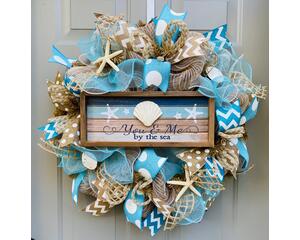 Beach Burlap Deco Mesh Wreath with Seashells, You and Me By T...