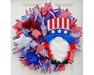 Patriotic Gnome Wreath for Front Door, July 4th Front Porch D...