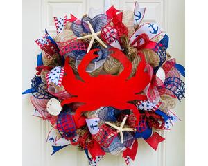 Beach House July 4th Wreath, Patriotic Crab with Stars and St...