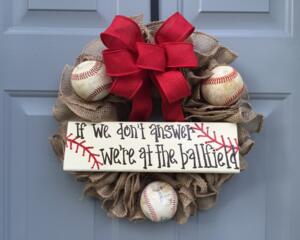 Baseball Wreath for Front Door, If We Don't Answer We're At T...
