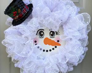 Snowman Deco Mesh Wreath, Christmas Wreath, Red and White Wre...