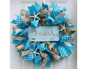 Beach Wreath, Burlap Deco Mesh Wreath with Seashells, Love Be...