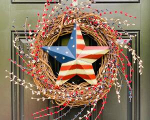 Americana Rustic Wreath, Patriotic Pip Berry Farmhouse Grapev...