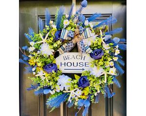 Beach House Floral Boho Wreath with Starfish, Nautical Wreath...