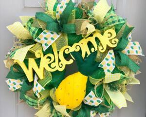 Welcome Pineapple Summer Deco Mesh Wreath, Welcome Wreath, Su...