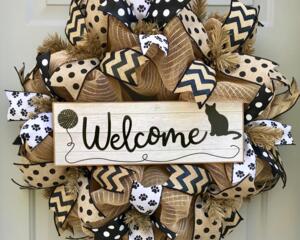 Welcome Cat Wreath, Pet Wreath, Paw Print Wreath, Black Brown...