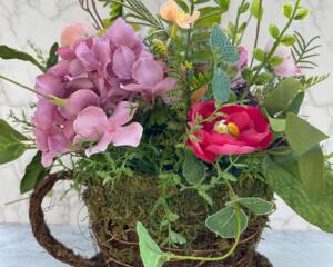 Grapevine Tea Cup Floral Arrangement, Happy Easter Table Cent...