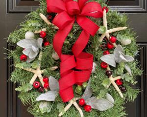 Nautical Christmas Evergreen Wreath with Starfish and Lambs E...