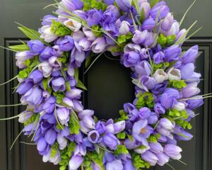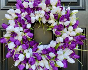 Purple Tulip Wreath on Grapevine, Floral Mothers Day Decor, S...