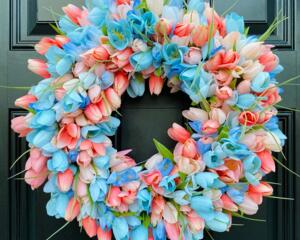 Pastel Tulip Wreath on Grapevine, Floral Mothers Day Decor, S...