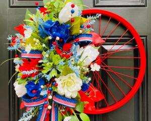 Patriotic Floral Bicycle Wheel Wreath for Front Door, July 4t...