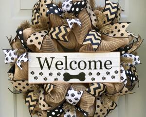 Welcome Dog Wreath, Pet Wreath, Paw Print Wreath, Black Brown...