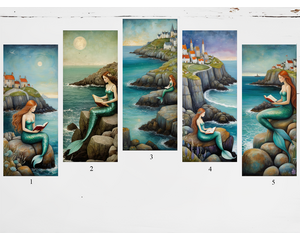 Each of my bookmark designs starts with the concept in my head which I often sketch out first. I use AI programs to begin the process, so no these are not hand painted. However, AI programs never deliver a final image. As a photographer with my extensive background in Photoshop and making digital art I often combine 2 to 5 different images to create one image, re-painting mistakes, fixing faces, removing unwanted items, adding new things I want, changing colors, changing sizes, changing lighting, etc. So in the end, they match what was in my mind and aren't just a generated image.