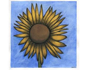 Immerse yourself in the beauty of nature with this handcrafted Sunflower Watercolor and Ink Painting. This piece radiates the vibrancy and warmth of a sunflower in full bloom, making it the perfect choice to bring life to any room. With its bright yellow and orange hues, the sunflower is intricately painted with watercolor, providing a soft and delicate touch. The solid black ink defines the edges of the petals and the center, adding an unexpected and beautiful contrast. This striking combination of watercolor and ink creates a visual feast of colors and textures - from the soft, muted backdrop to the striking sunflower taking center stage. Every detail in this painting is meticulously depicted, showcasing not just the sunflower but the artist's passion for nature's beauty. This stunning piece of original sunflower art is one-of-a-kind. No prints have been made, and no duplicates exist. The painting is not just unique but also truly special. Is there anything more exclusive than owning an original piece of art that no one else has? Experience the joy and warmth that only this painted sunflower can bring. Add this radiant piece to your collection today!