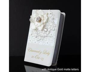 White Catholic Wedding or Quinceanera bible personalized