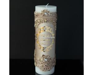 Decorated pillar candle for Quinceanera or wedding