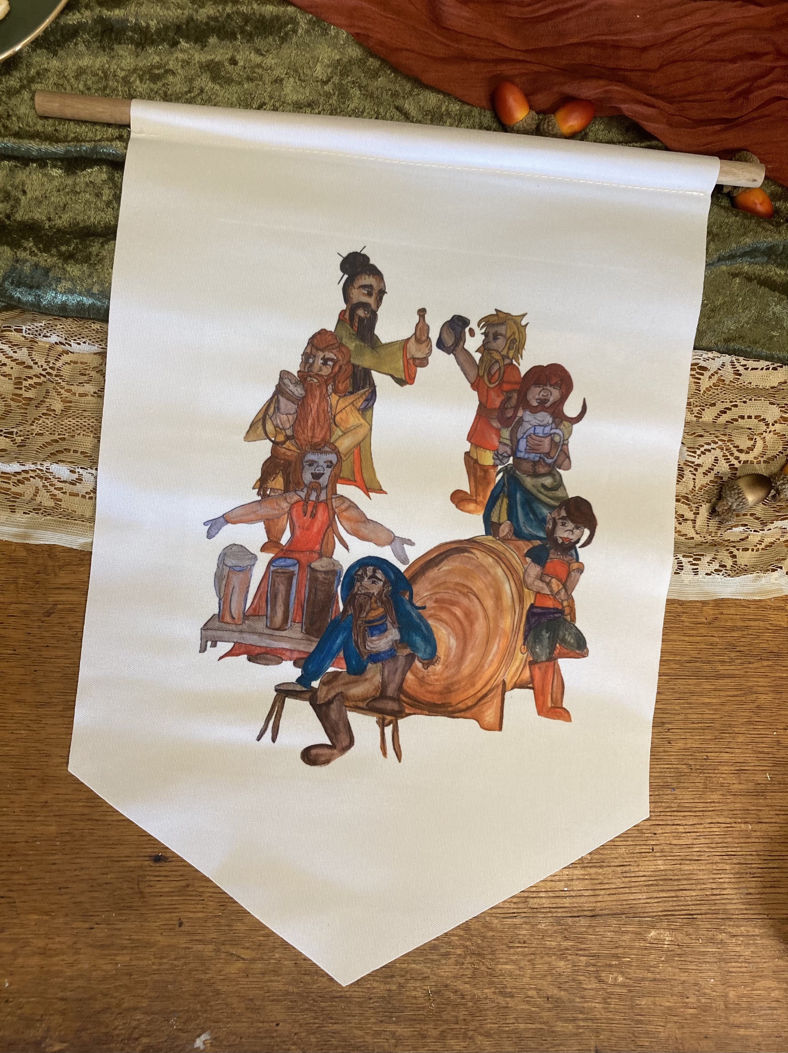 Choose your favorite type of drinking vessel , or whichever dwarf you think is the neatest (I won’t tell them). Or get them all, either all on one banner or one of each!