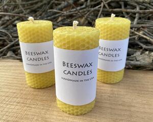ALL of my BEESWAX candles orders have FREE SHIPPING ! Made with pride in the USA. Highest quality and handmade. . My pure beeswax candles do not drip or smoke while burning!! I hand rolled each candle with pure cotton wicks. Long burning, drip free with a light honey scent. Proudly made on a mountaintop in Pennsylvania of raw natural beeswax. My workshop is powered by wind generated electricity. The candle packaging is made from recycled content. Our beeswax candles smell heavenly! Fast shipping is standard, made with love is also standard!!
