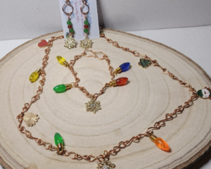 Handcrafted Copper Christmas Charm Jewelry Set – Necklace, Br...