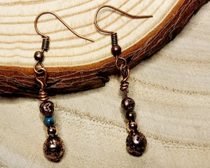 Handmade Copper Lava Stone and Turquoise-Gold Glass Dangle Ea...