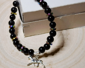 Dog Lover’s Gemstone Bracelet – Handmade with Black Onyx, Ros...