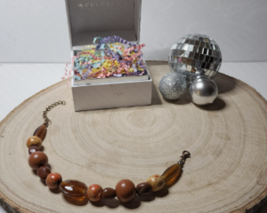 Earthy Brown & Amber Beaded Bracelet – Handmade Wooden & Glas...