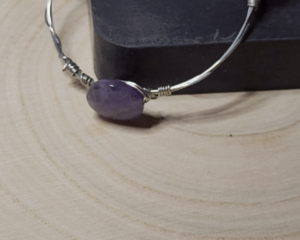 ilver-Colored Copper Wire Wrapped Bangle with 20mm Amethyst C...