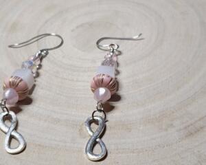 Handcrafted Pink Beaded Infinity Charm Earrings