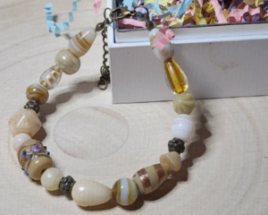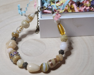 Handcrafted Golden Glow Beaded Bracelet – Neutral & Amber Tones