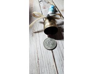 Wooden Christmas ornaments with cowbell. Blue and white with ...