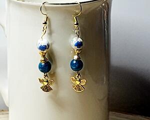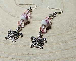 Handmade Porcelain Beaded Earrings with Pink Floral Design - ...