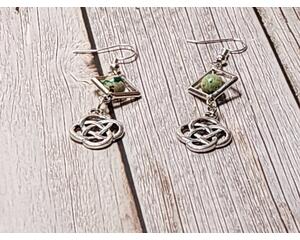 Silver St. Patricks Day drop earrings with framed green Jaspe...
