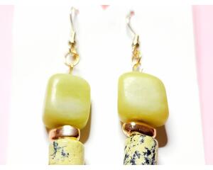 Handcrafted Tiger Eye Cylinder Bead Drop Earrings with Amber ...