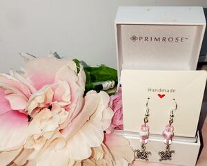 Pink floral porcelain drop earrings with silver-colored turtl...