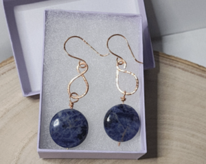 Figure Eight Copper Drop Earrings with Sodalite Coin Beads H...