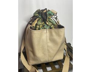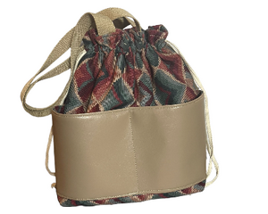 Brown faux leather four pocket drawstring bag